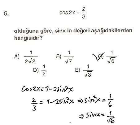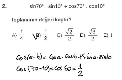 Çözüldü Trigonometrik İşlem - Özdeşlikler (2 Soru)