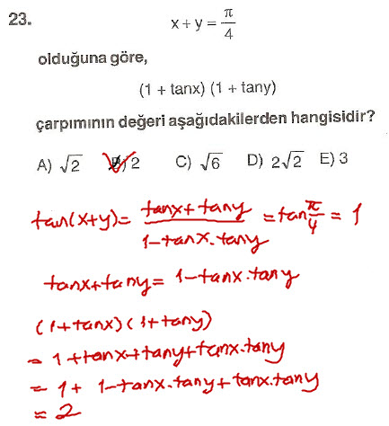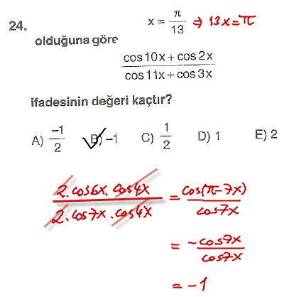 Çözüldü Trigonometrik İşlem - Özdeşlikler (2 Soru)