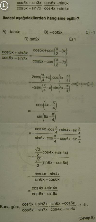 Çözüldü Trigonometrik İşlem - Özdeşlikler