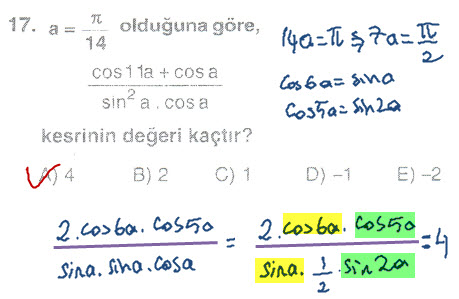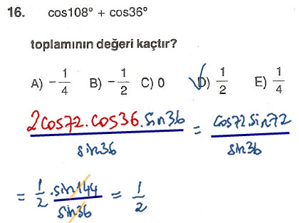 Çözüldü Trigonometrik İşlem ve Özdeşlikler (2 Soru)