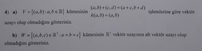 Soru Lineer Cebir - Vektör Uzayı ve Alt Uzayı
