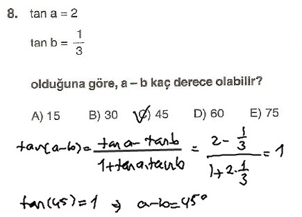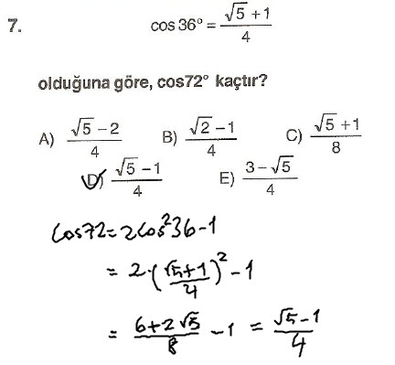 Çözüldü Trigonometrik İşlem - Özdeşlikler (2 Soru)