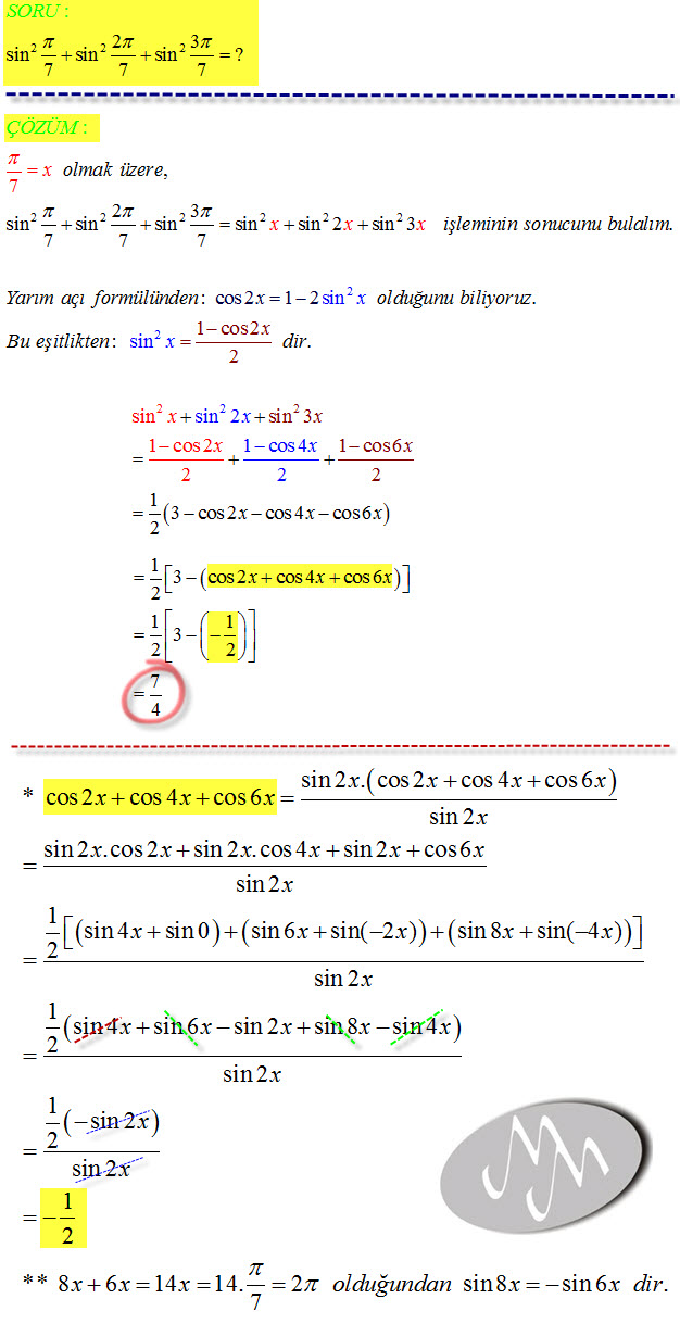 Trigonometri,Karmaşık Sayılar,Logaritma,Parabol Trigonometrik İşlem 26 Nisan 2024